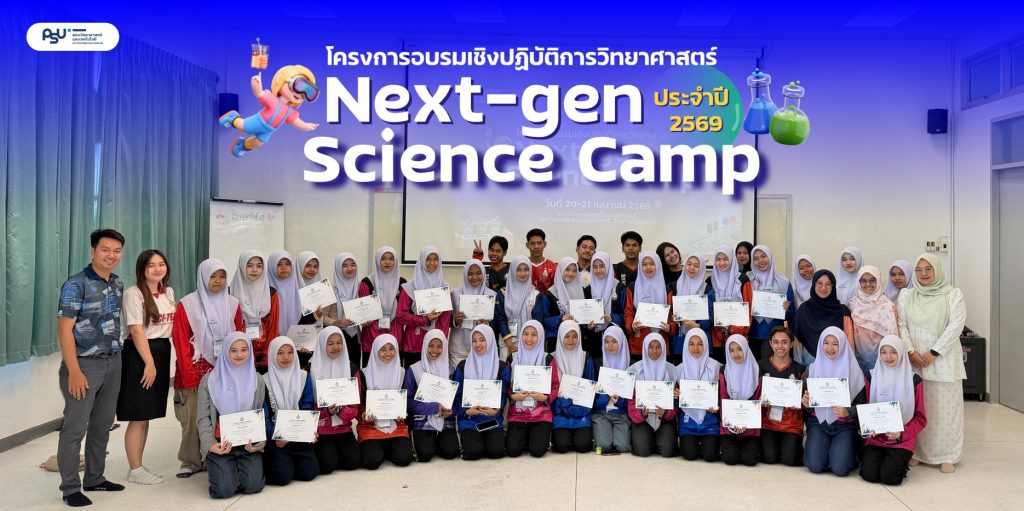 คณะวิทยาศาสตร์และเทคโนโลยี มหาวิทยาลัยสงขลานครินทร์ วิทยาเขตปัตตานี จัดโครงการอบรมเชิงปฏิบัติการวิทยาศาสตร์ “Next-gen Science Camp” โดยมี รองศาสตราจารย์ ดร. อนิรุทธ ผลอ่อน รองคณบดีฝ่ายวิจัย นวัตกรรม และบริการวิชาการ กล่าวต้อนรับนักเรียนมัธยมศึกษาปีที่ 4–5 จากโรงเรียนบาเจาะ จังหวัดนราธิวาส จำนวน 37 คน